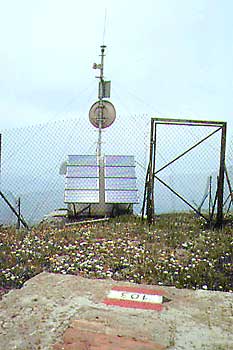 In primo piano la bandiera segnaleticadel C.A.I. che segnala il sentiero 103. Si può vedere il pannello fotovoltaico che alimenta un'antenna d'aiuto per la navigazione aerea.