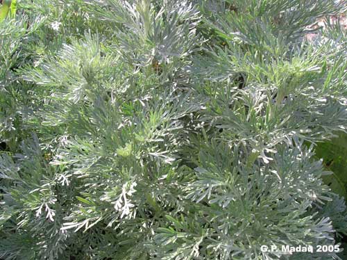 Cespuglio alto 1-1,60 cm, di colore grigio-argento, base legnosa e rami sottili, foglie picciolate e quasi lineari.