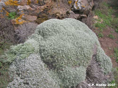 Ha un portamento a pulvino, molto ramificata, spinosa e di colore grigio